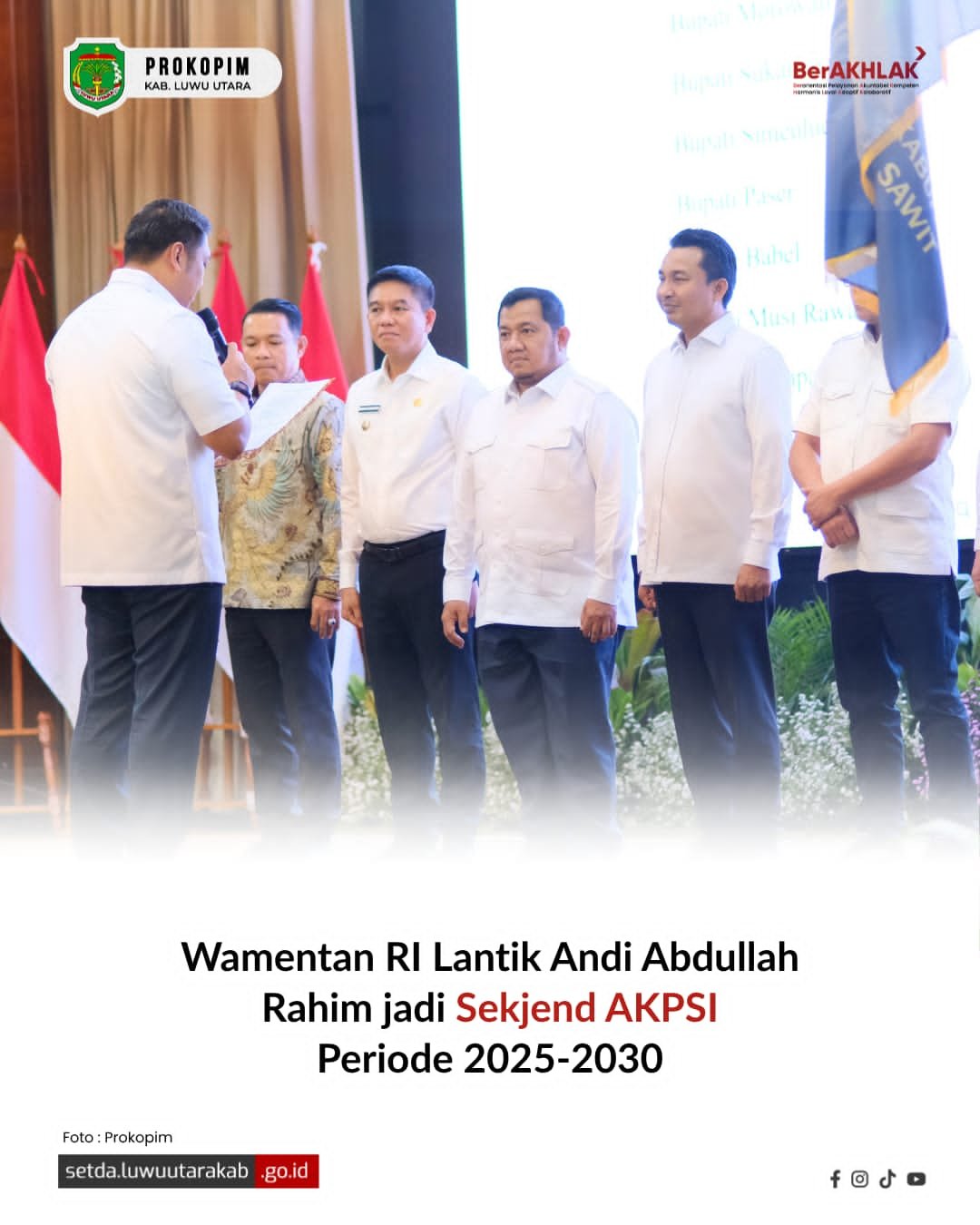 JAKARTA,4Menit.Com— Sebuah langkah strategis kembali ditorehkan oleh Bupati Luwu Utara, Andi Abdullah Rahim. Ia resmi dikukuhkan sebagai Sekretaris Jenderal (Sekjen) Asosiasi Kabupaten Penghasil Sawit Indonesia periode 2025–2030, menandai peran penting daerah dalam percaturan industri sawit nasional yang semakin modern dan berkelanjutan.