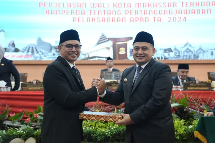 MAKASSAR – DPRD Kota Makassar menggelar Rapat Paripurna dengan agenda Penjelasan Wali Kota Makassar atas Rancangan Peraturan Daerah tentang Pertanggungjawaban Pelaksanaan APBD Tahun Anggaran 2024, Senin (30/6/2025).