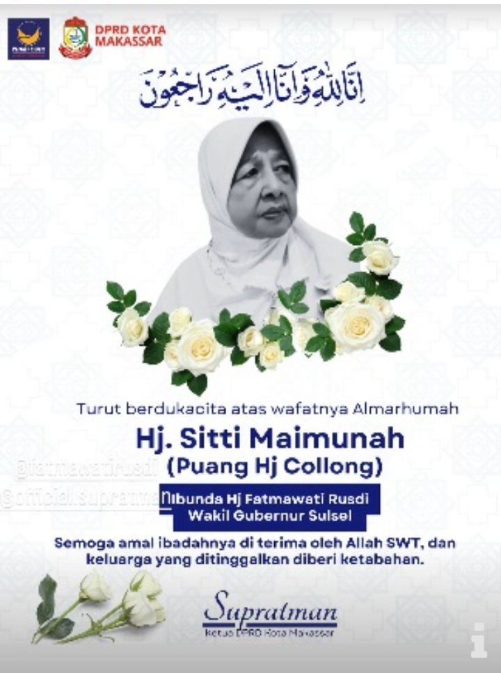 Ucapan turut berduka cita tersebut disampaikan melalui akun media sosial DPRD Kota Makassar.