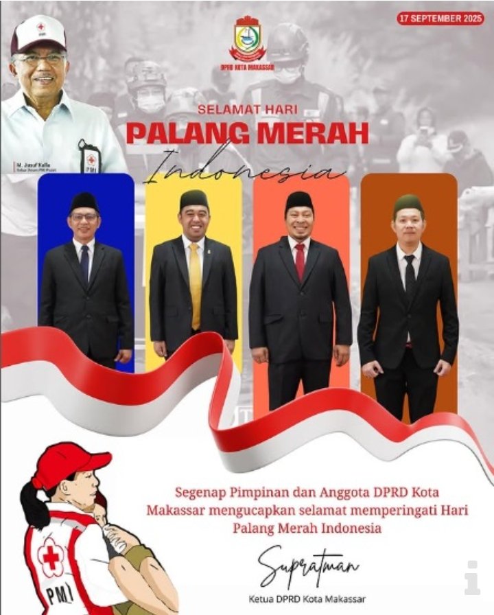 Makassar,4Menit.Com – Pimpinan dan Anggota DPRD Kota Makassar mengucapkan Selamat Hari Palang Merah Indonesia, pada Rabu (17/9/2025) hari ini.
