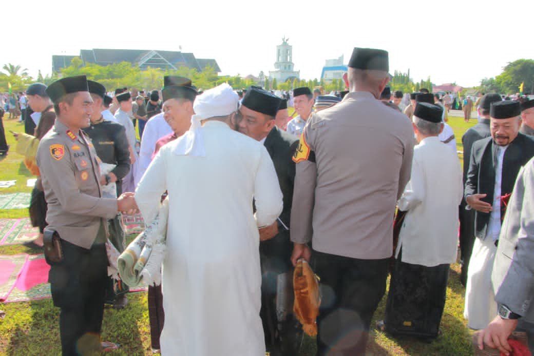Pelaksanaan Shalat Idul Fitri berlangsung khidmat dan dihadiri ribuan jamaah yang turut hadir unsur Forkopimda, jajaran pemerintah daerah, tokoh agama, dan tokoh masyarakat.