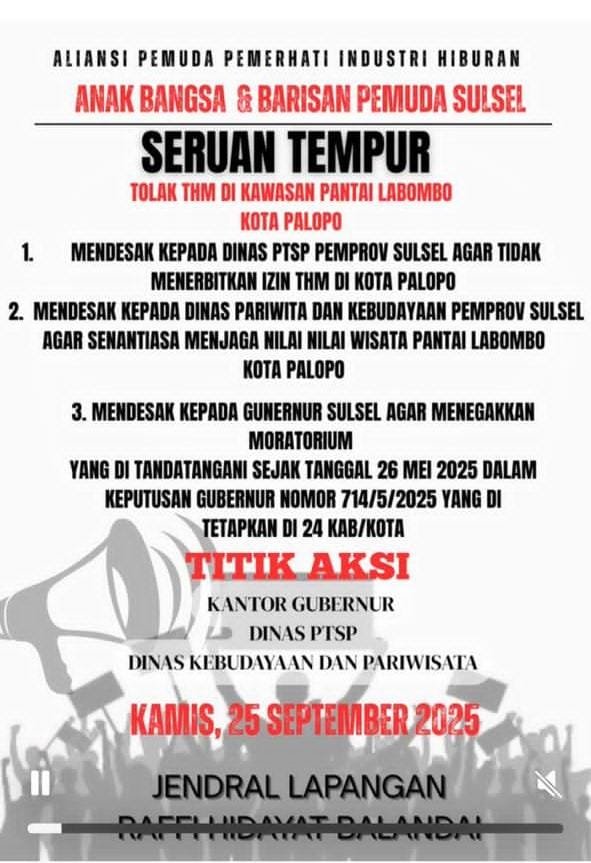 “Sehubungan dengan beredarnya informasi mengenai isu pembukaan Tempat Hiburan Malam (THM) di kawasan Pantai Labombo, bersama ini Pemerintah Kota Palopo menyampaikan klarifikasi sebagai berikut: