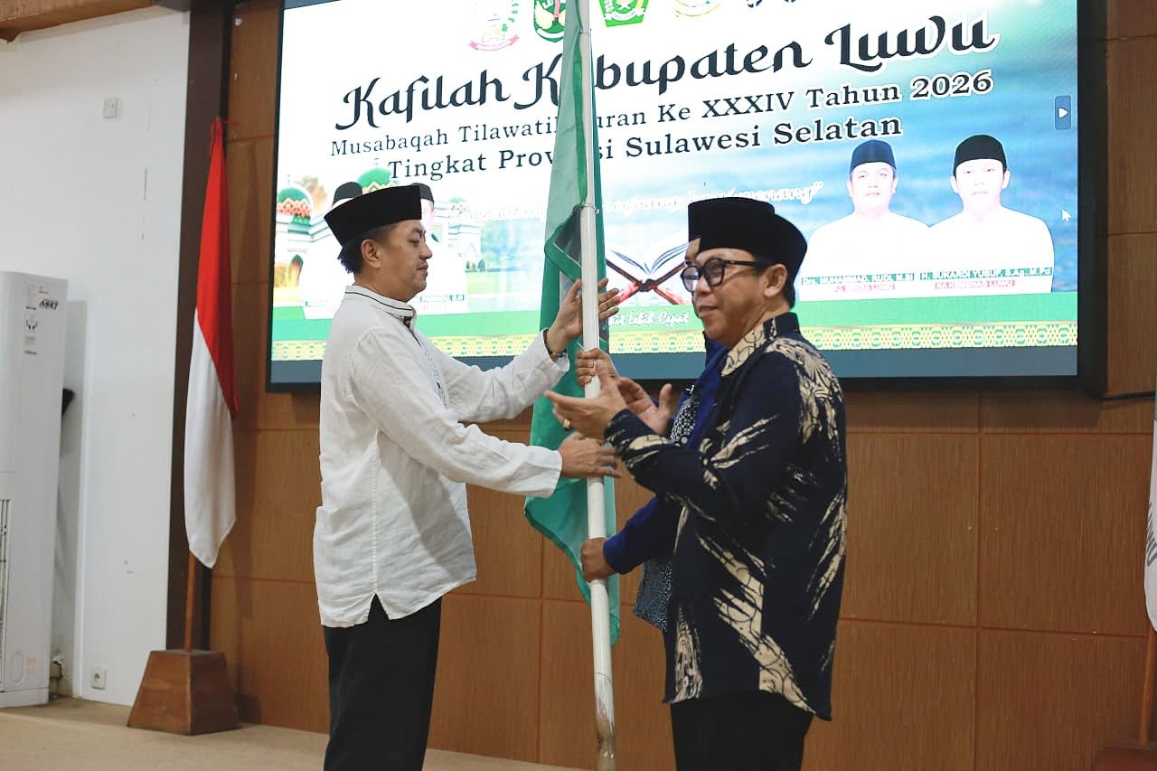 LUWU — Pemerintah Kabupaten Luwu melepas secara resmi kafilah Kabupaten Luwu untuk mengikuti ajang Musabaqah Tilawatil Qur’an (MTQ) XXXIV Tingkat Provinsi Sulawesi Selatan Tahun 2026 yang dirangkaikan dengan pengukuhan Pengurus Panitia Hari Besar Islam (PHBI) Kabupaten Luwu Periode 2026–2030. Kegiatan ini berlangsung di Aula Rumah Jabatan Bupati Luwu, Jumat (10/4/2026).