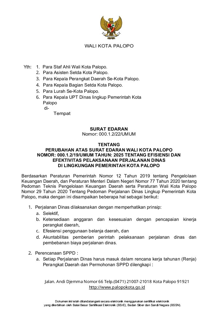 Dengan diterbitkannya surat edaran ini, maka Surat Edaran Wali Kota Palopo Nomor 000.1.2/19/Umum Tahun 2025 tentang Efisiensi dan Efektivitas Pelaksanaan Perjalanan Dinas dicabut dan dinyatakantidak berlaku lagi.