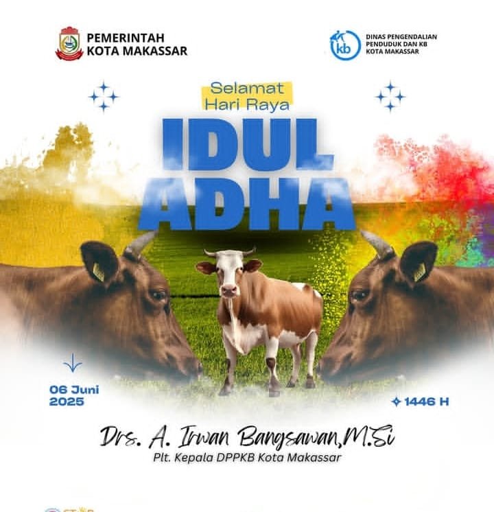 MAKASSAR,4Menit.Com— 6 Juni 2025 –Dalam rangka memperingati Hari Raya Idul Adha 1446 Hijriah, Dinas Pengendalian Penduduk dan Keluarga Berencana (DPPKB) menyampaikan ucapan selamat kepada seluruh umat Muslim di Indonesia.