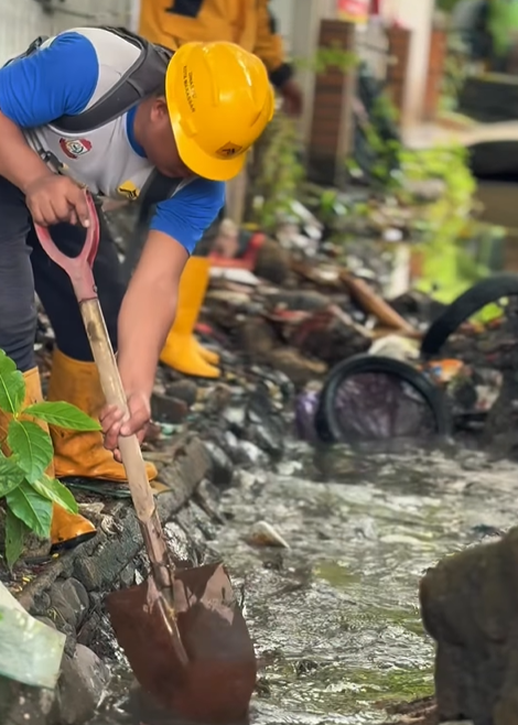 Setibanya di lapangan, petugas melakukan pengerukan endapan lumpur, mengangkat sampah yang menyumbat aliran, serta memastikan struktur drainase tetap berfungsi optimal. Langkah ini dilakukan untuk mengembalikan kapasitas saluran dalam menyalurkan air secara lancar, terutama menjelang musim hujan yang berpotensi meningkatkan debit air di area permukiman.