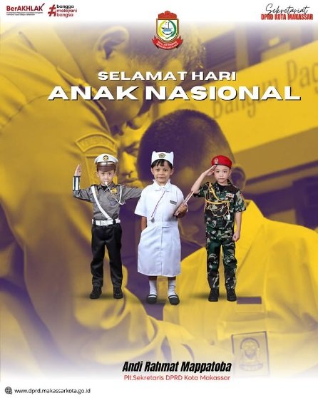 Sekretariat DPRD Kota Makassar mengucapkan selamat memperingati Hari Anak Nasional (HAN) tahun 2025 pada Rabu (23/7/2025) hari ini.