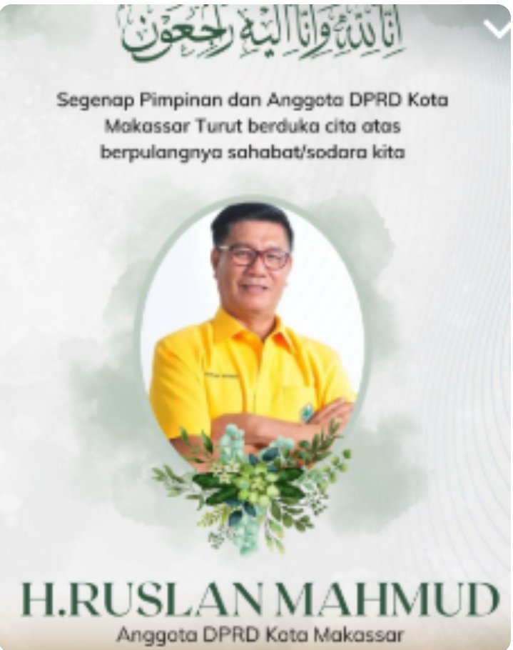 Ruslan Mahmud dikabarkan meninggal dunia pada usia 60 tahun. Informasi dari Sekretariat DPRD Makassar menyebutkan, almarhum wafat pada Sabtu (19/4/2025), diduga akibat serangan jantung.