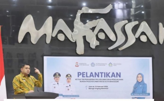 Makassar,4Menit.Com – Pembina Tim Penggerak Pemberdayaan dan Kesejahteraan Keluarga (TP PKK) Kota Makassar, Munafri Arifuddin, menyampaikan sejumlah pesan kepada para camat dan Ketua TP PKK kecamatan saat pelantikan pengurus TP PKK se-Kota Makassar di Baruga Anging Mamiri, Rumah Jabatan Wali Kota Makassar, Jumat (13/2/2026).